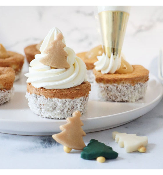 Dê um toque de magia aos seus doces de Natal e fim do ano com as Decorações de Natal em Massapão. Este conjunto de pequenas árvores natalícias em branco cremoso, dourado e verde pinho, transforma qualquer tronco de Natal, bolo ou sobremesa num verdadeiro cenário encantado.
